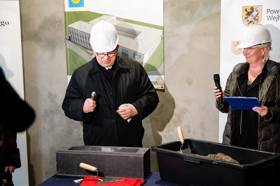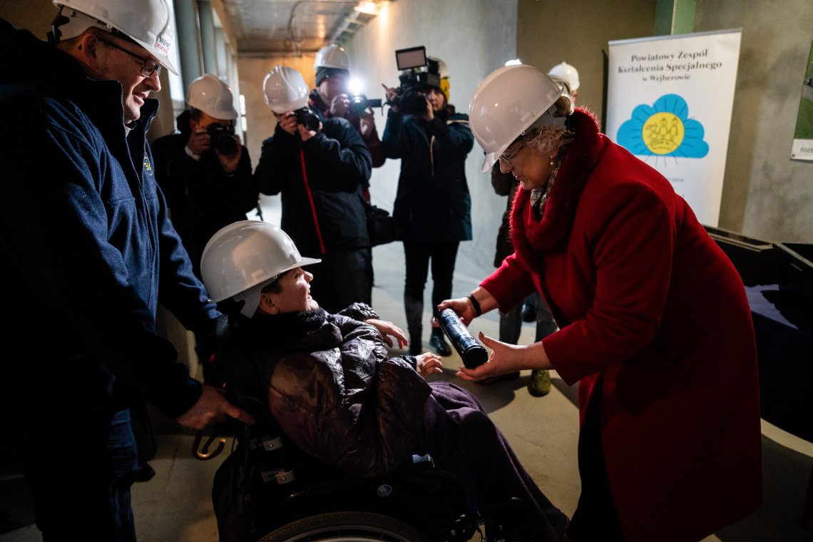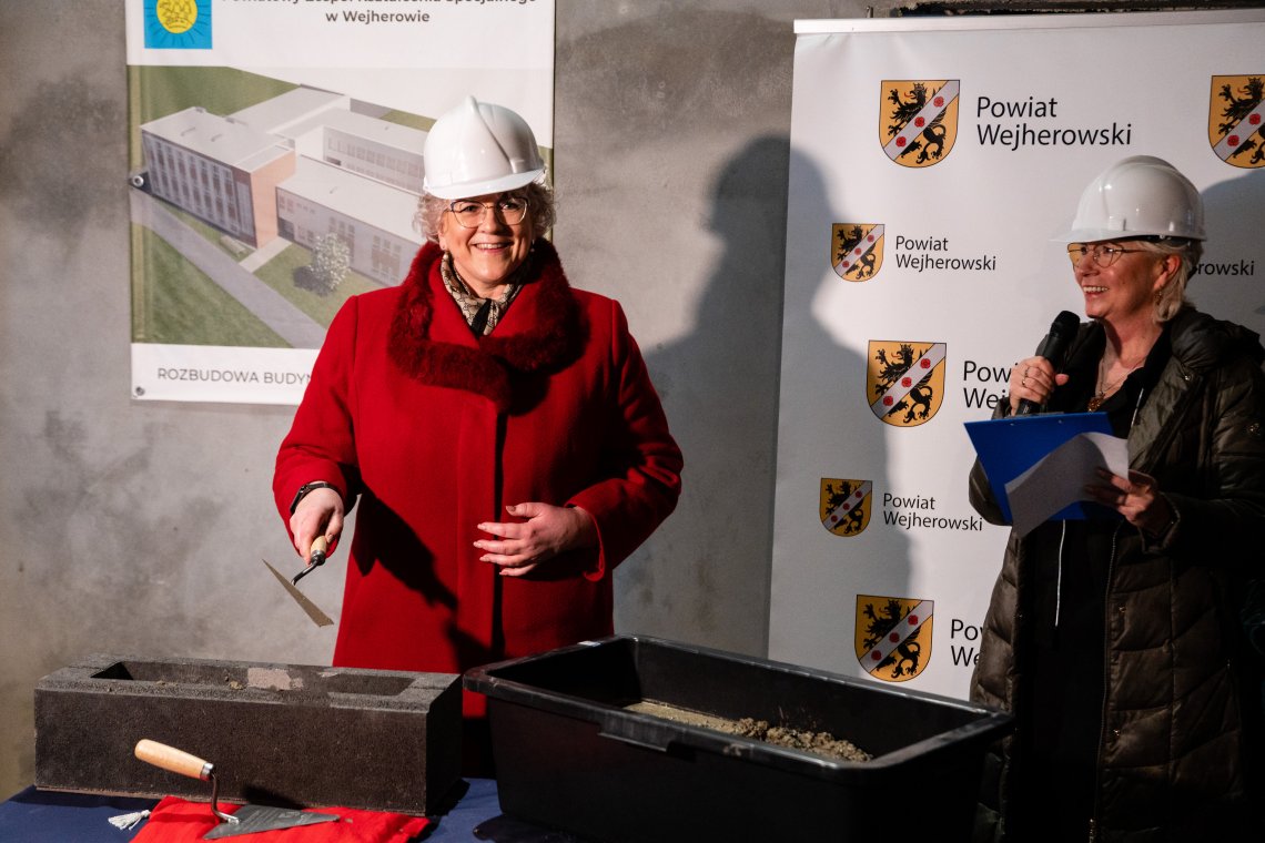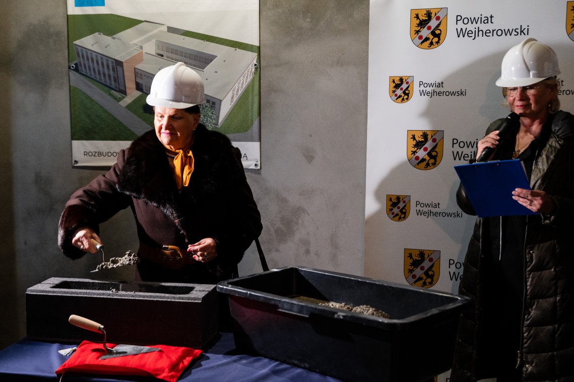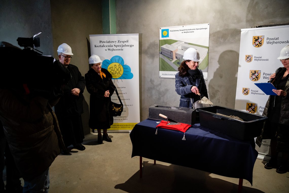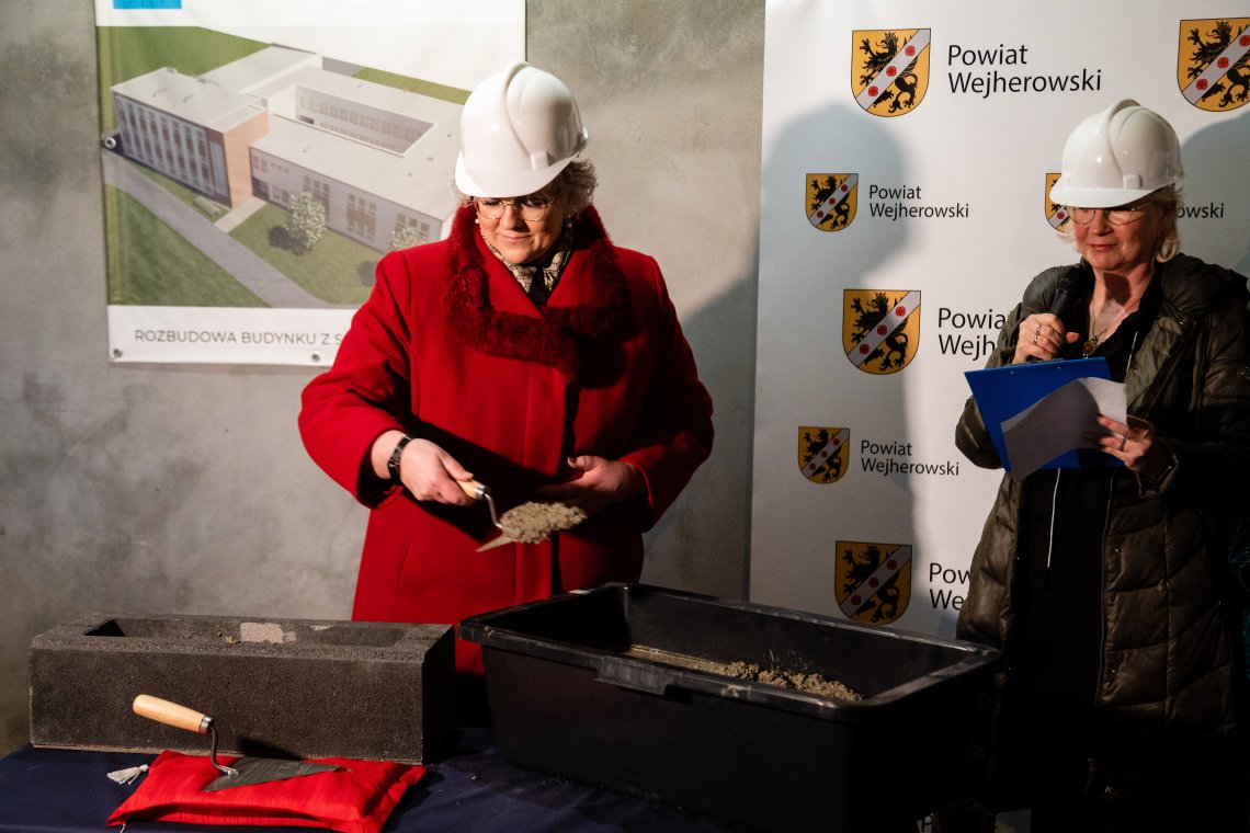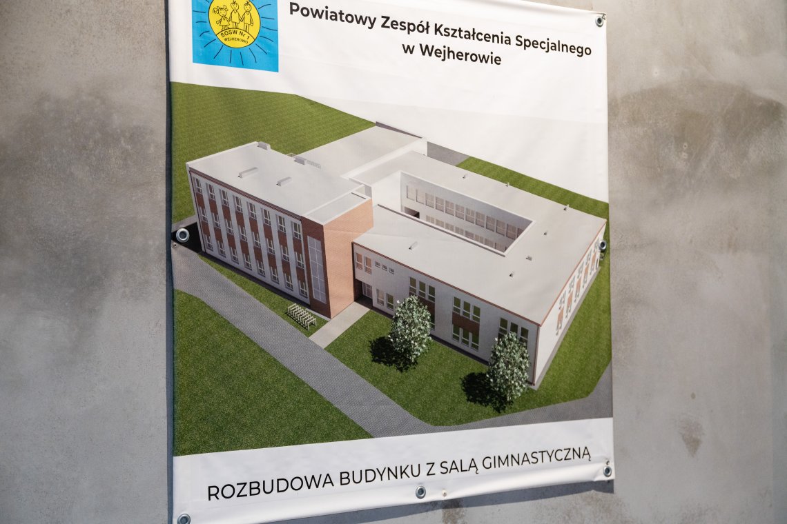 – Powiatowy Zespół Kształcenia Specjalnego w Wejherowie znajduje się w wielu zabytkowych budynkach, które mają wspaniałą historię. Sto lat temu właśnie tutaj, w Zakładzie Opiekuńczo-Wychowawczym przebywały dzieci syberyjskie. Jednak placówka nigdy nie miała nowego obiektu, zaprojektowanego i wybudowanego z myślą o potrzebach wychowanków tej placówki. Z roku na rok przybywa mieszkańców powiatu wejherowskiego, ale rośnie też liczba dzieci wymagających specjalnej ścieżki edukacyjnej. I właśnie dla tych uczniów budujemy ten nowy obiekt oraz modernizujemy i przebudowujemy salę gimnastyczną – podkreśliła podczas uroczystości Starosta Wejherowski Gabriela Lisius.