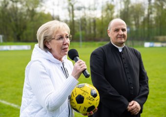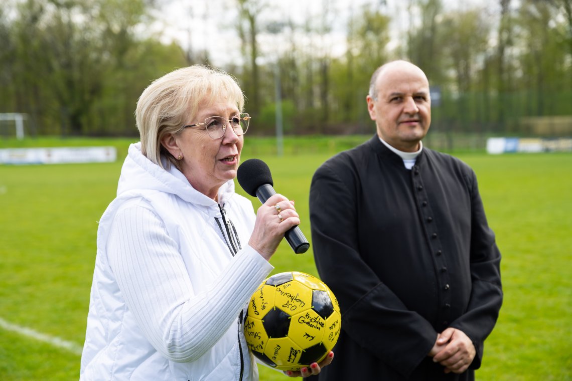 – Z okazji rocznicy Konstytucji 3 Maja tradycyjnie spotykamy się na Wzgórzu Wolności, aby wspólnie świętować i kibicować drużynom podczas meczu, który został zorganizowany, aby wesprzeć akcję zbiórki datków dla chorej Asi, która ma porażenie mózgowe, jest niedosłysząca i potrzebuje pomocy – mówiła Starosta Wejherowski Gabriela Lisius.