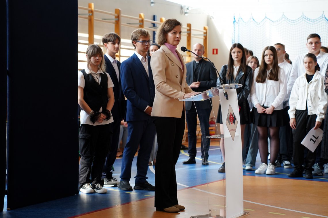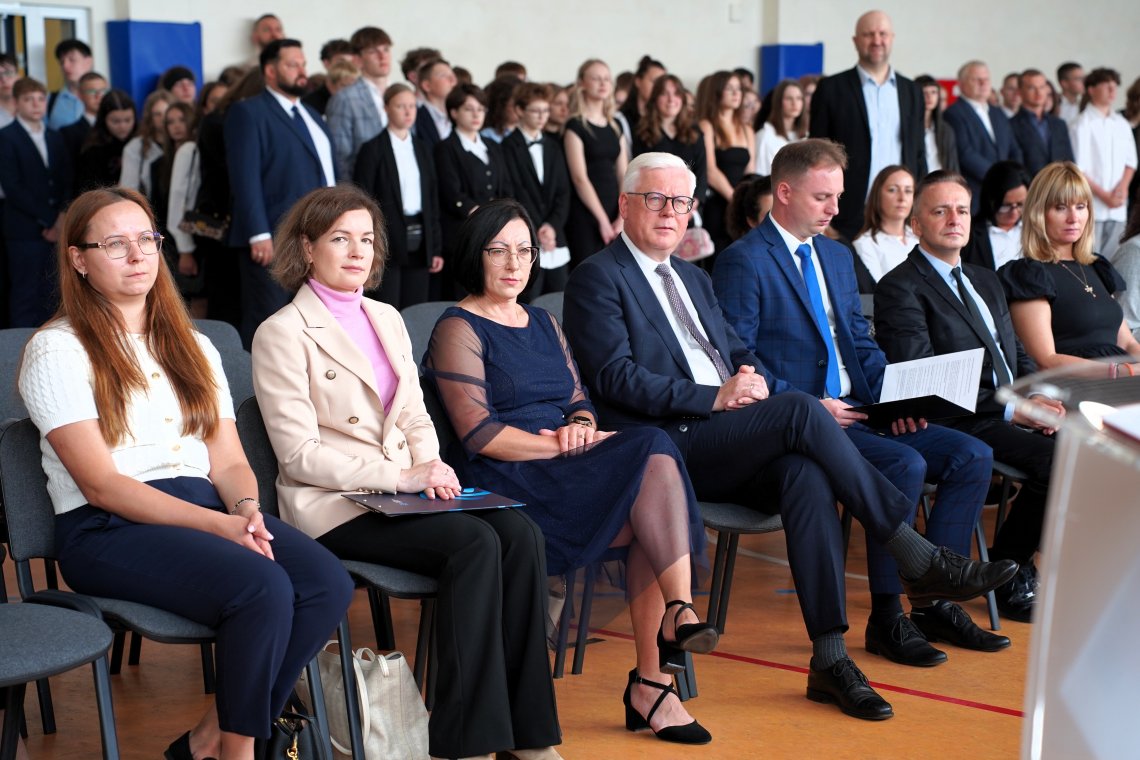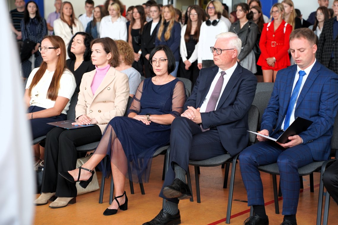 W wydarzeniu udział wzięli przedstawiciele władz Powiatu Wejherowskiego – Wicestarosta Witold Reclaf oraz Etatowy Członek Zarządu Powiatu Wejherowskiego Iwona Szczygieł, którzy złożyli życzenia pomyślności i sukcesów w nowym roku szkolnym dla uczniów, nauczycieli oraz całej społeczności szkolnej.