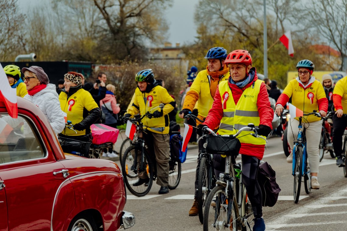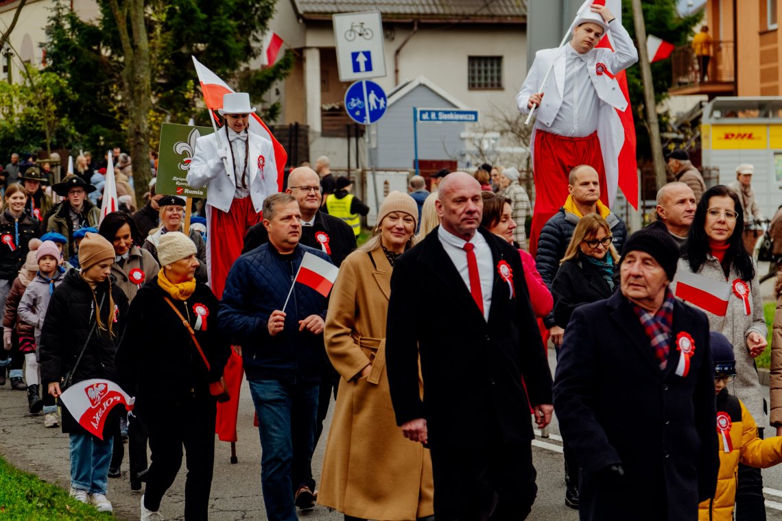 Wydarzenie rozpoczęło się od złożenia kwiatów pod Pomnikiem Hieronima Derdowskiego i Józefa Wybickiego. Następnie w Sanktuarium Najświętszej Maryi Panny Wspomożenia Wiernych odprawiona została uroczysta msza święta w intencji Ojczyzny. Głównym punktem obchodów była biało-czerwona parada niepodległościowa, która przeszła głównymi ulicami Rumi pod obelisk przy ulicy Chełmińskiej. Pochodowi towarzyszyła Orkiestra Dęta Gminy Luzino, zapewniając oprawę muzyczną uroczystości i podkreślając jej podniosły charakter. Uczestnicy zatrzymali się pod pomnikiem Bohaterów Walk z Faszyzmem, gdzie złożono kwiaty, odśpiewano hymn państwowy, a uroczystość zakończył apel pamięci i salwa honorowa.