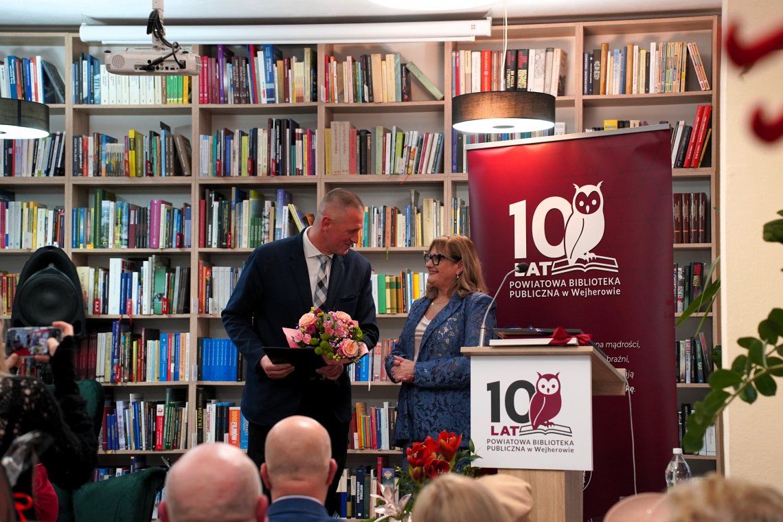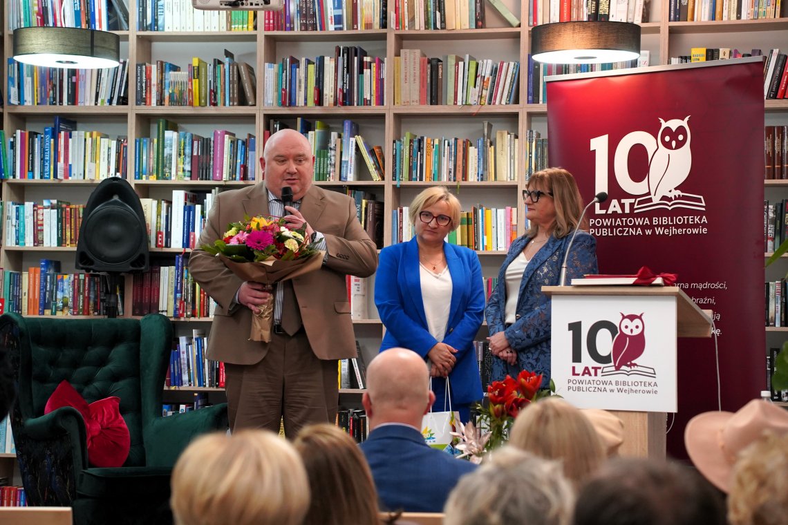 – Powiatowa Biblioteka Publiczna od dziesięciu lat pełni w naszym regionie niezwykle ważną rolę. To nie tylko miejsce wypożyczania książek, ale przede wszystkim przestrzeń spotkań i rozwijania pasji naszych mieszkańców. Dziękuję Pani Dyrektor oraz wszystkim Pracownikom za codzienną pracę, kreatywność i zaangażowanie, które czynią bibliotekę miejscem wyjątkowym – powiedział Starosta Wejherowski Marcin Kaczmarek.